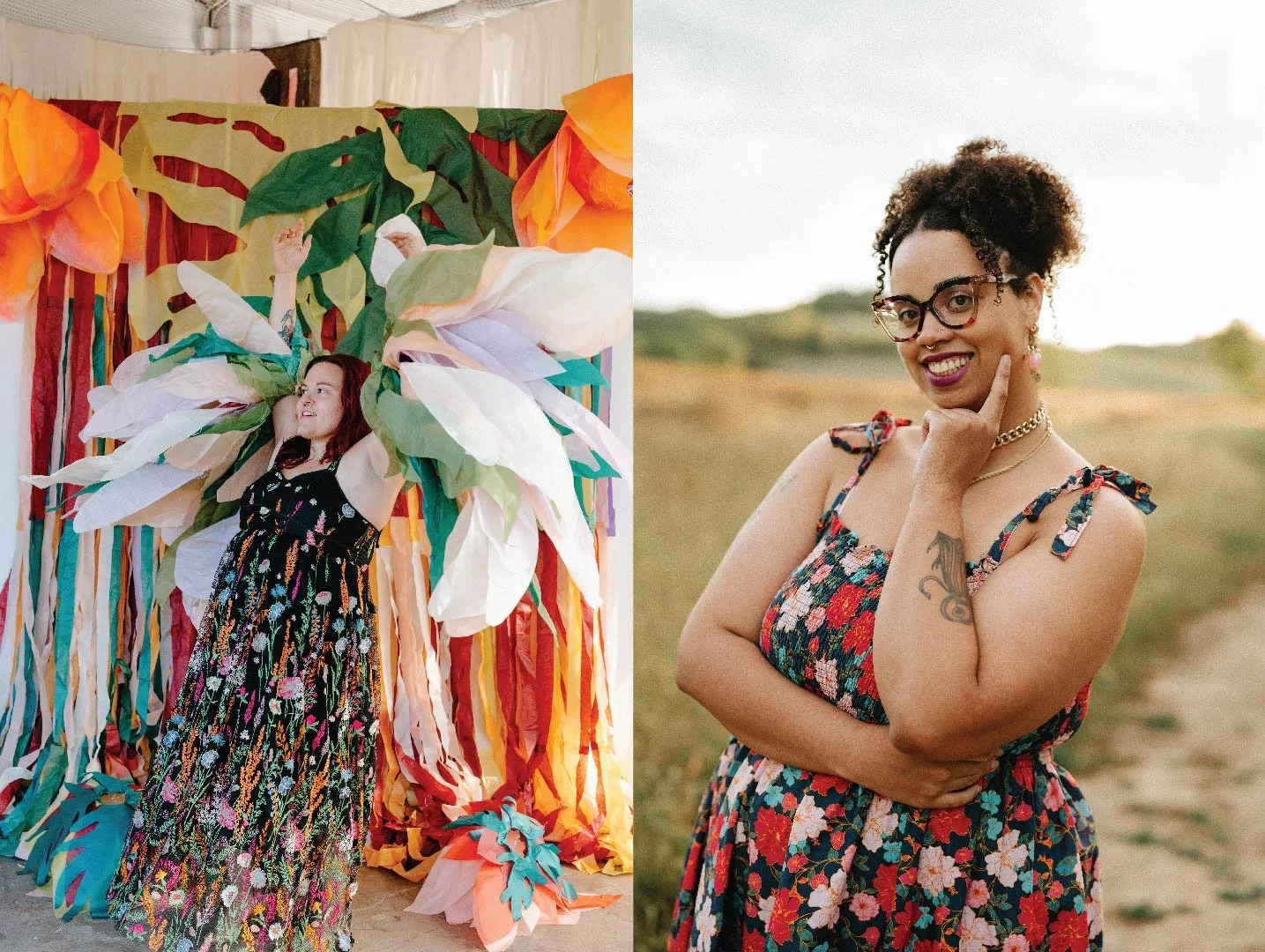 Individually, we do a lot of our own projects and are involved in many local organizations. Heidi is also an installation artist local to Columbus, Ohio, creating large-scale 3D tissue paper installations and acrylic painting. She has worked with Columbus Society of Communicating Arts (2024 Co-President), Franklinton Arts District, Wild Goose Creative, Franklinton Farms, 934 Gallery, and more. Ashley is local to Canton, Ohio, where we’re both from. She’s a true artistic entrepreneur, weaving her creativity into every aspect of her life. As a professional tarot reader and astrologer, she taps into the cosmos to offer profound insights and guidance. Beyond divination, her expertise in reiki and yoga/meditation empowers individuals to embrace healing and mindfulness. With a passion for art and design, Ashley's multi-faceted talents enrich her work as a professional artist and designer, bringing beauty and meaning to the world around her.