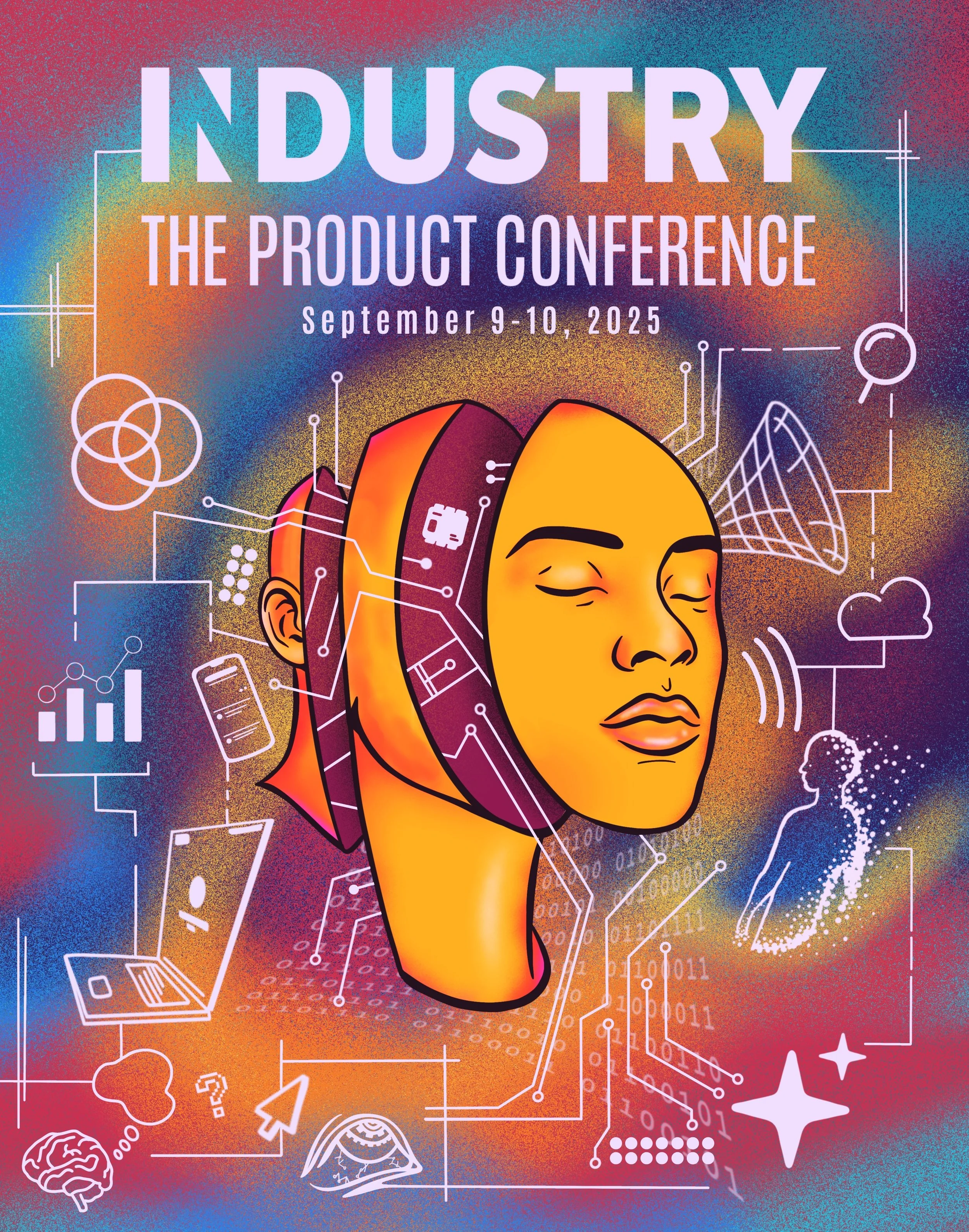 Digital design illustrated for Mind The Product’s annual conference, Industry: The Product Conference. Used as the event poster, and secondarily as a merch design.
